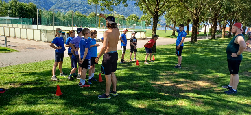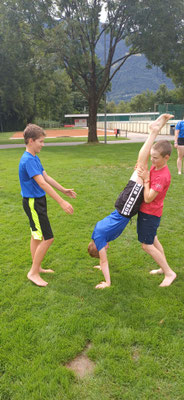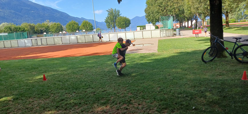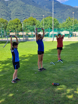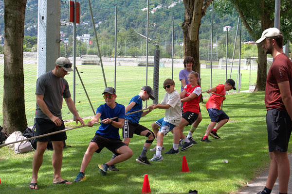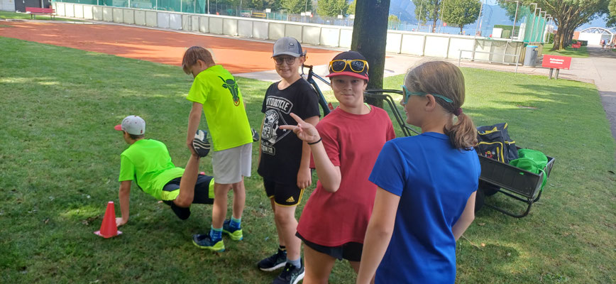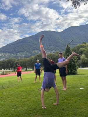 Heute haben wir ein Strengen Tag gehabt. Am Morgen hatten wir zuerst Schwingen und Ringen. Danach mussten wir mit Remo Roner Steinstossen und mit Selina Roner die Freiübung Turnen. Das Zmittag fand ich nicht so gut es gab Fisch und Risotto. Nach dem Mittag hatten wir eine lange pause und konnten uns erholen, denn der Nachmittag wurde noch sehr streng. Zuerst mussten wir zu Mario Brand, bei dem wir Laufschule und Schnelligkeit hatten. Dort besuchten uns Luca Arnolds Eltern. Danach wurde es sehr streng, denn wir hatten Crossfit bei Andi Imhof. Das Znacht war wieder besser es gab Burger, aber er war leider Vegi dazu gab es noch Nudeln. Nach dem Znacht durften wir an den See gehen und Baden. Alle mit einem 11er Jahrgang oder älter durften auf Locarno in den Ausgang gehen. Nach dem Baden konnten wir Volleyball spielen. Danach durften wir duschen gehen und uns in unsere Zelte schlafen gehen mit viel Muskelkater. Wir vermissen unser Mami unsren Dädi sehr fest. Wir mussten manchmal ein bisschen weinen in der Nacht in unserem Schlafsack.