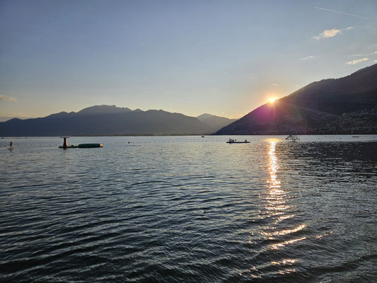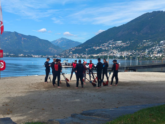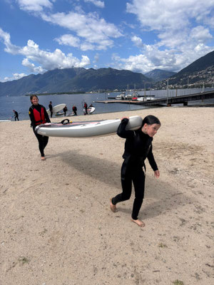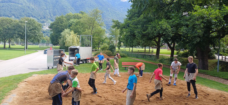 Dann erlebten wir einen nassen Start in den Tag: Wir durften mit dem SUP auf dem Lago Maggiore fahren und danach kurz im See baden. Danach ging es weiter mit Schwingen im Sägemehl. Später durften wir sogar nochmal ein bisschen länger baden.