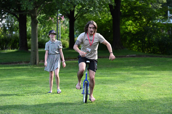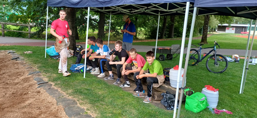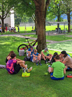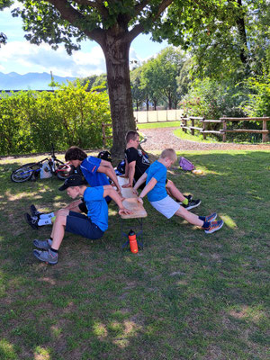 Kurz darauf hatte das „Eistee-Trio“ einen Spezialauftrag: Sie mussten die mit Eistee gefüllten Getränke-Behälter mit dem Fahrrad zur stabilen Gothardo bringen – dort begann nämlich das Spielturnier.