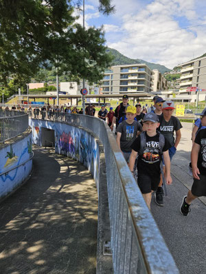 Die Anreise verlief nicht ganz reibungslos: Ein Bus geriet in einen Stau und kam mit etwa einer Stunde Verspätung an. Rund 50 Minuten standen sie sinnlos im Verkehr, und kurz vor dem Ziel musste zudem noch eine spontane Pinkelpause eingelegt werden – direkt vor dem Rotlicht. Schließlich ging es dann über den Pass nach Tenero weiter.