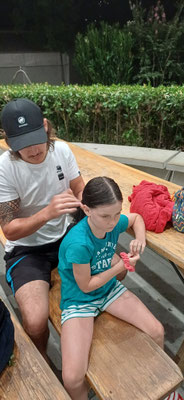 Am Abend konnten wir wählen zwischen Tennis und Beachvolleyball. Alle gingen zuerst zum Tennis. Die Ältesten durften sich noch ausdehnen, weil sie vorher Crossfit hatten. Danach gingen sie noch Beachvolleyball spielen.