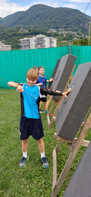 Danach ging es weiter mit Schwingen, Steinheben und noch einmal Bogenschiessen.
